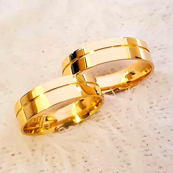 PAR DE ALIANÇAS DE OURO 18K RETA COM FRISO LATERAL 5MM 6G