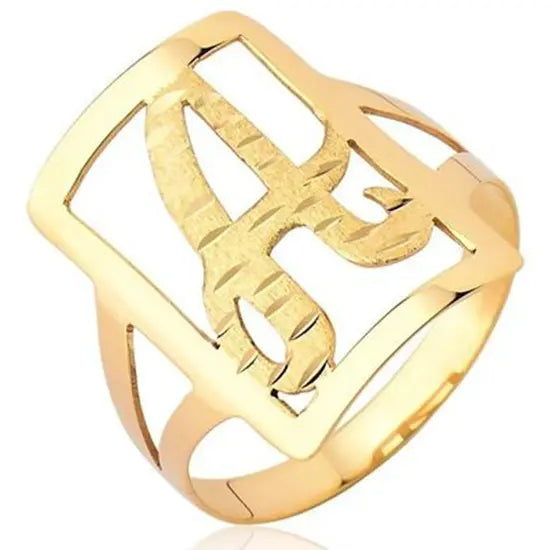 ANEL DE LETRA QUADRADO A OURO 18K PURO