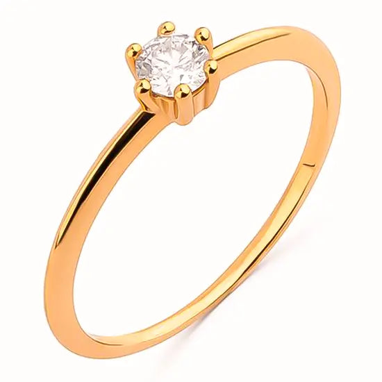 ANEL SOLITÁRIO COM ZIRCÔNIA EM OURO 18K
